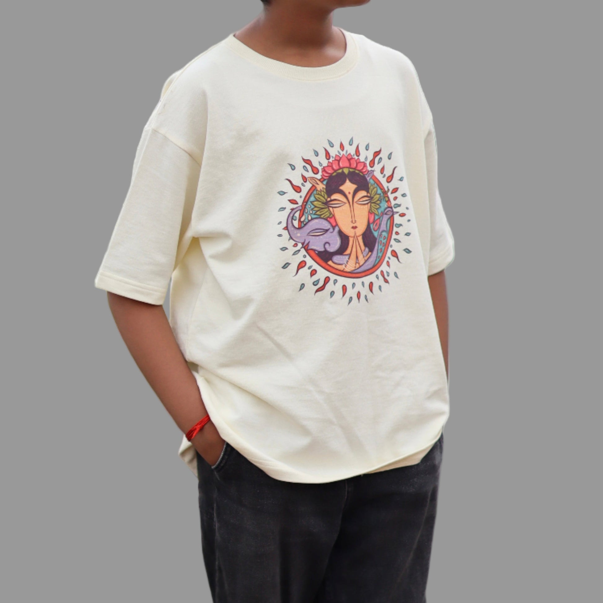 “Uzhudhundu vazhvaare vazhvar matrellam thozhudhundu pin selvar.” Those who live by ploughing the soil, truly live. She feeds, nurtures, and teaches quietly shaping all existence. Dropped in Tofu shade with water-based prints that sink into the fabric, this piece honours the truth we all stand on: every life begins with her. Read this story